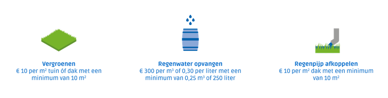 - aantallen vergroening/afkoppeling/waterberging in m2 / m3, zodat we weten hoeveel subsidie u krijgt;