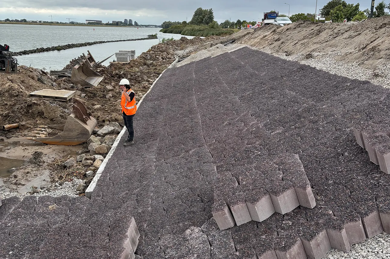 26 september 2025Langs de Schuwacht in Lekkerkerk worden de basaltstenen opnieuw geplaatst en aangevuld met stortsteen. In de Zuidplaspolder hogen we een kade op.