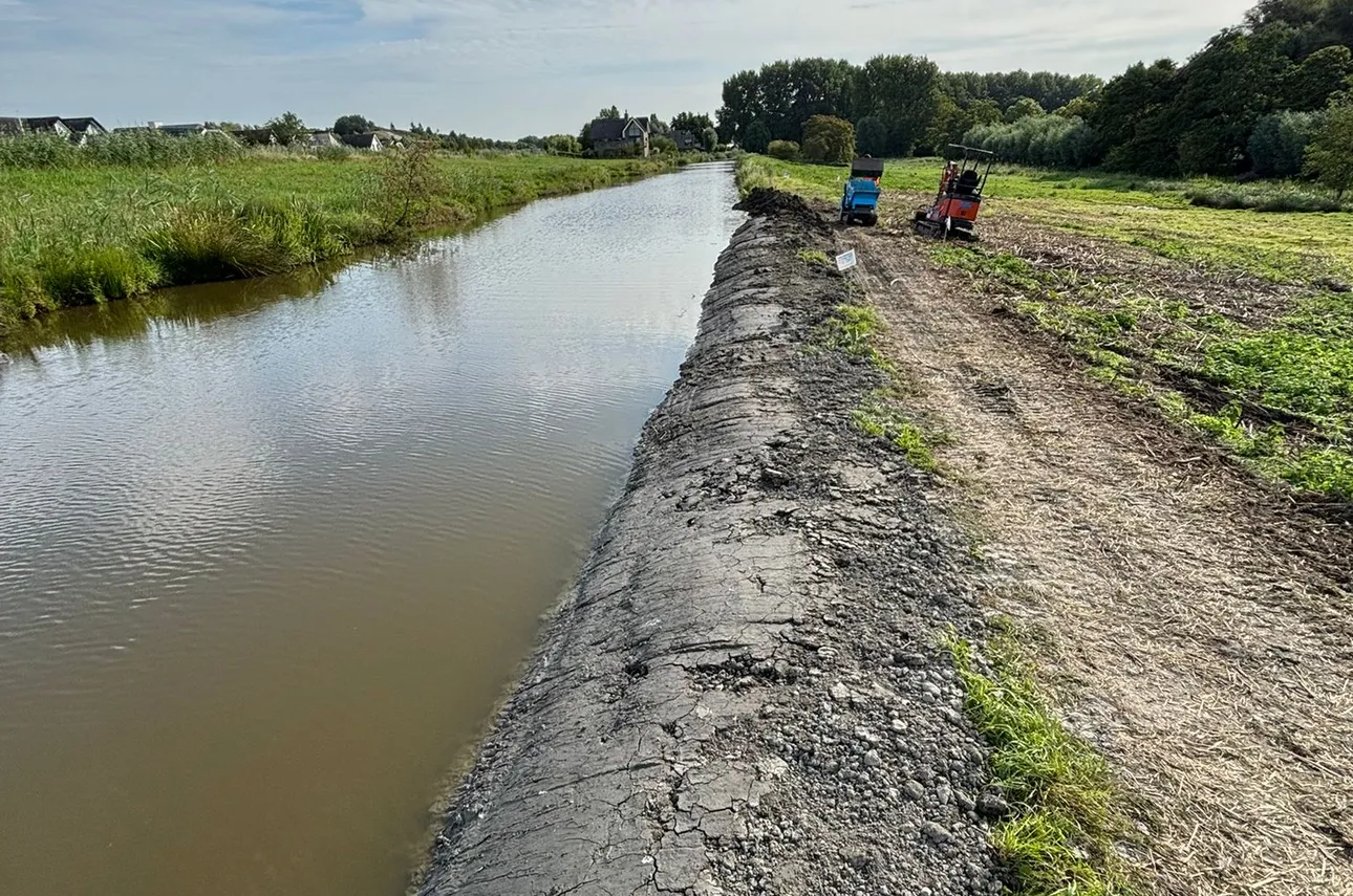 Het hoogheemraadschap werkt nog zeker twee weken aan de kade in Rotterdam-Ommoord. Eerder is er klei aangebracht aan de buitenkant van de kade.
