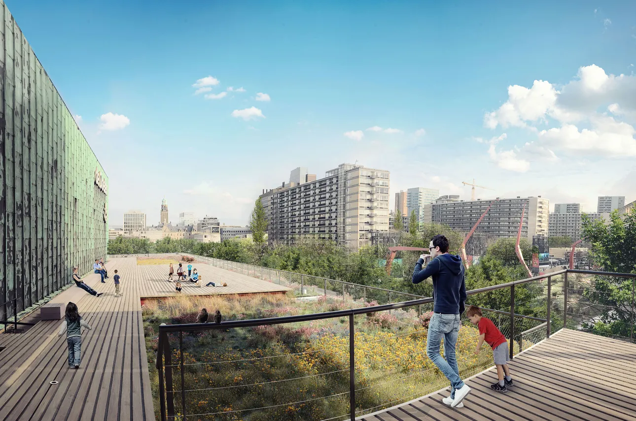 31 mei 2022Het dak van concert- en congresgebouw de Doelen is nu bedekt met 2.581m² groen.