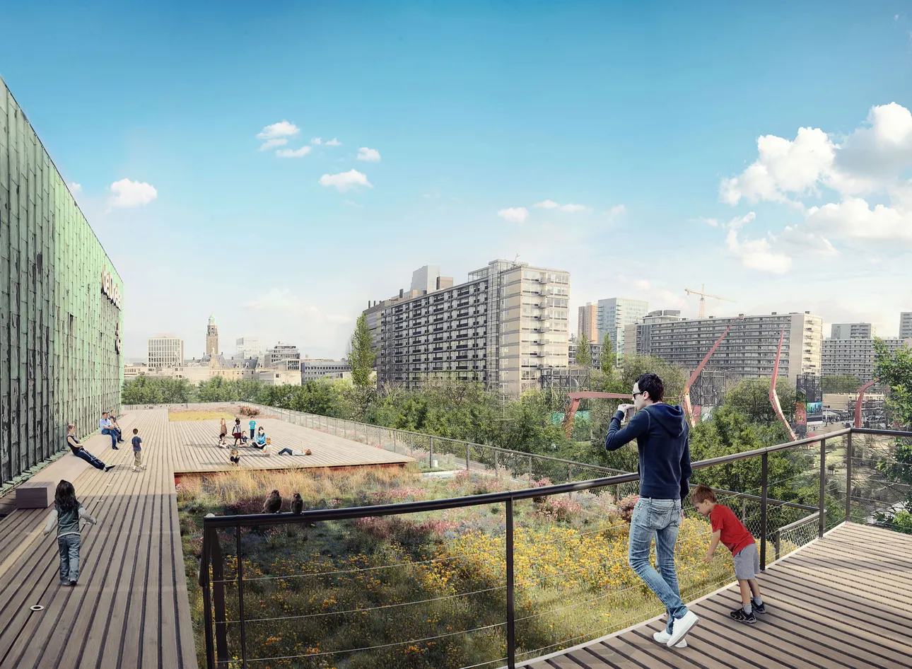 Een groen, biodivers en waterbergend dak op de Doelen in Rotterdam
