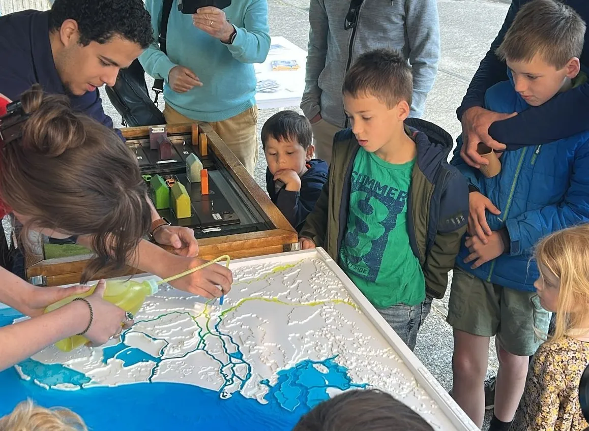 We simuleren een hoosbui: hoe kunnen we voorkomen dat de straten dan blank komen te staan? En bij onze dijktafel beleeft u hoe een dijk doorbreekt: welke dijk is het sterkst? Met de 3D waterkaart van Nederland kunnen we de zeespiegel laten stijgen en ontdekt u hoe ons land eruit zou zien zonder dijken en gemalen.