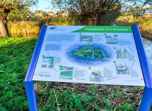 Wie meer wil weten over de snoekenpaaiplaats kan een kijkje nemen in het Berg en Broekpark, naast kinderboerderij De Wilgenhof in Rotterdam-Hillegersberg. Bij de ingang van het park staat ons informatiebord met tekeningen en uitleg in tekst. Een leerzaam bord waarop staat wanneer en hoe de snoeken komen, paaien, eitjes afzetten, opgroeien en weer weggaan.