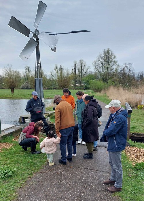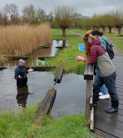 Aan het begin van het jaar zetten we een stuk grasland onderwater in het Berg en Broekpark. Dit doen we door een stuw open te zetten. Zo kan water vanuit de Bergse Achterplas het park instromen. Dit gebeurt met hulp van een windmolen.