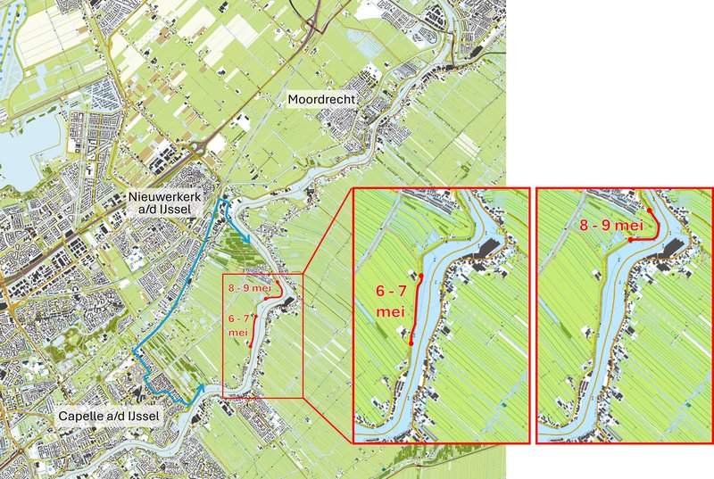 Op 22 april zijn de werkzaamheden op de Groenendijk tussen Nieuwerkerk en Capelle aan den IJssel begonnen. Dit heeft u in het vorige nieuwsbericht kunnen lezen. De werkzaamheden op de Groenendijk gaan verder in de week van 6 t/m 9 mei. Hiervoor zijn verschillende wegafsluitingen nodig.