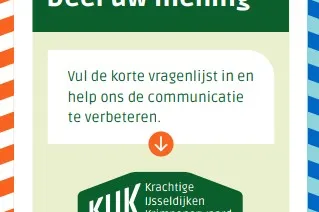 28 april 2025Het project Krachtige IJsseldijken Krimpenerwaard (KIJK) is al even bezig. Wij horen graag uw mening over onze communicatie met u.