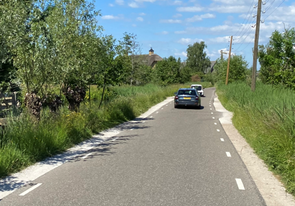 De weggebruikers gebruiken naast de officiële passeerplaatsen ook andere punten om elkaar te passeren, met ongewenste bermschade tot gevolg.