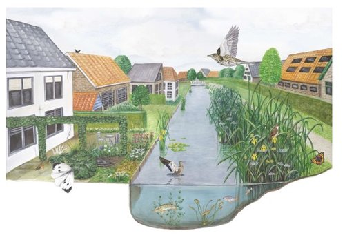 Bij het onderhoud aan de sloot is het belangrijk altijd een deel van de planten in en langs het water te laten staan. Zo is er altijd leefgebied voor verschillende soorten dieren en planten.