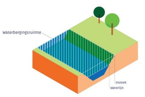 Figuur 2. De waterberging zit tussen de waterlijn en de insteek.