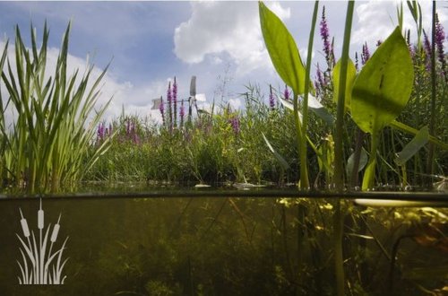 Figuur 4. Oeverplanten zijn planten die met de wortels in de (water)bodem groeien en altijd boven het water uitsteken.