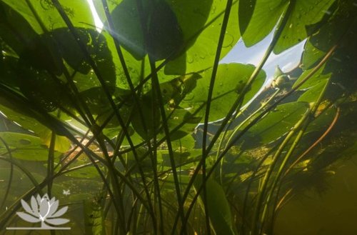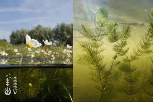 Figuur 5. Onderwaterplanten zijn planten die grotendeels onderwater groeien. Bloeiende delen steken boven het water uit.
