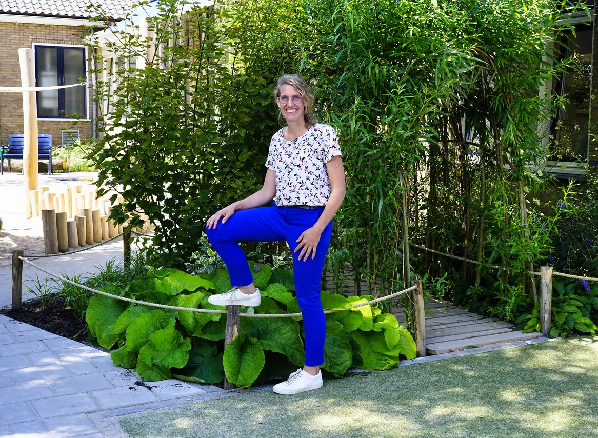 “Op het schoolplein kon het tijdens warme dagen met al die stenen erg heet worden. En als het hard regende, bleven plassen hier, maar ook in de straat lang staan. Daarnaast was het schoolplein niet bepaald inspirerend. Daarom hebben enkele ouders van leerlingen, een buurtbewoner en ikzelf een commissie gevormd om een plan te maken voor een leuker, groener en vooral klimaatbestendig schoolplein. Zo’n plan was ook nodig om in aanmerking te komen voor subsidies, onder meer van het Denk & Doe Mee!-Fonds van de gemeente Capelle en de Klimaat en Ruimte-subsidie van het hoogheemraadschap”, zegt Jorien Kraal-Kooijman, schoolleider bij pcb Groen van Prinsterer in Capelle aan den IJssel.
