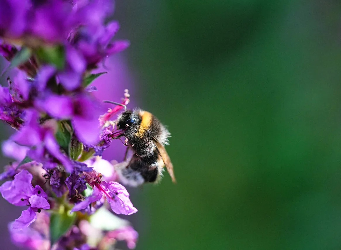 Uiteraard zijn er veel meer planten aanwezig. Daar profiteren insecten van. De Rosse metselbij, die zijn eitjes legt in de holle plantenstengels en bekend is als veelvuldige gast van bijenhotels in tuinen, kunt u hier nectar en stuifmeel zien verzamelen.