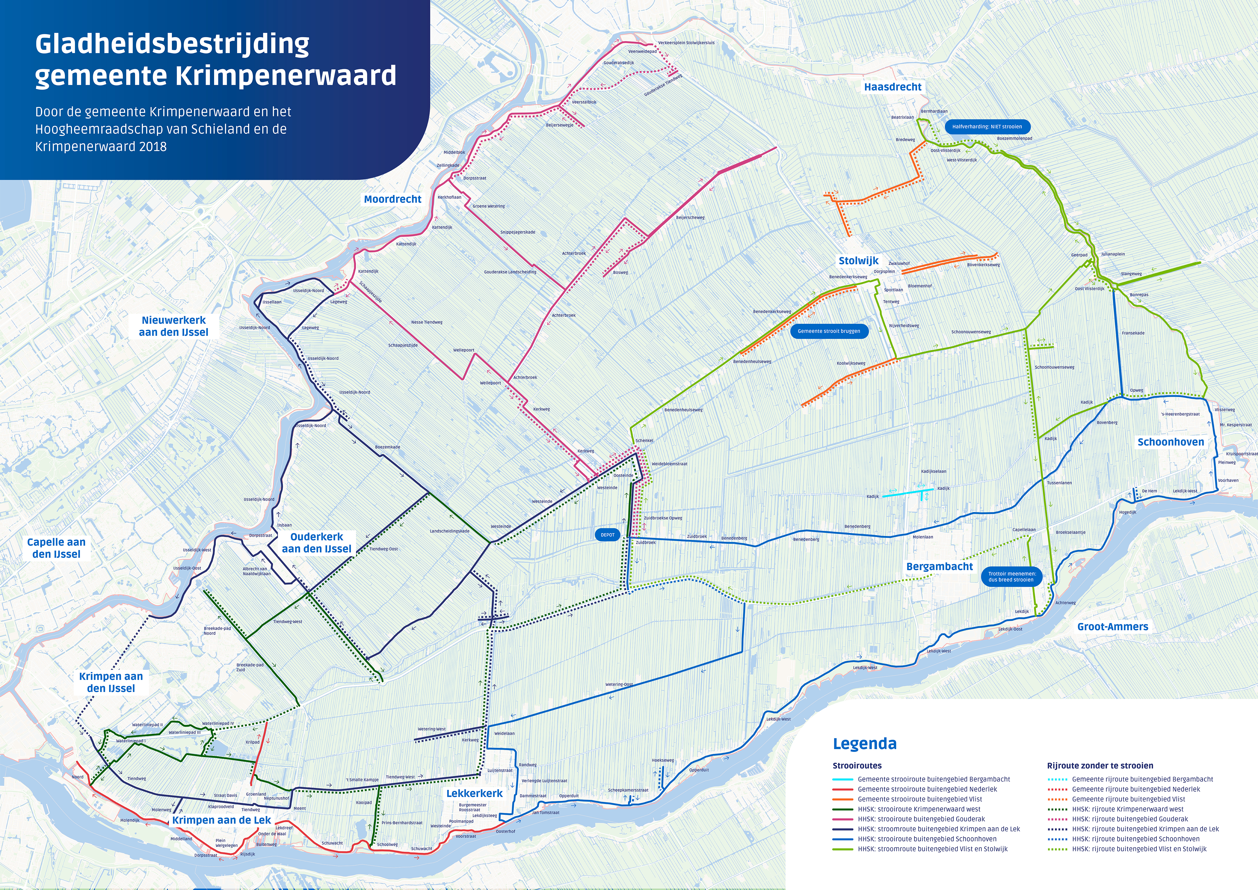 Bekijk onze strooiroutes op de kaart Strooiroutes HHSK (jpg, 18,3 MB) of lees de tekst hieronder.