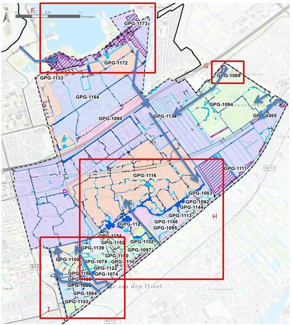 De twee polders zijn samen ingedeeld in 5 deelgebieden, welke met elkaar in verbinding staan door middel van inlaten, duikers en gemalen. Binnen deze deelgebieden zijn 100 peilgebieden aanwezig en 201 peilafwijkingen. Wateraan- en afvoer is in het gebied versnipperd, maar dit geeft op dit moment geen problemen.