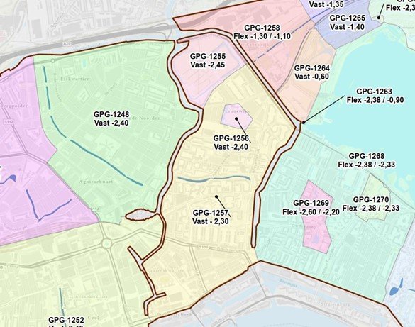 | Peilgebied | Naam | Waterpeil 2008 (meter NAP) | Nieuw waterpeil (meter NAP) |